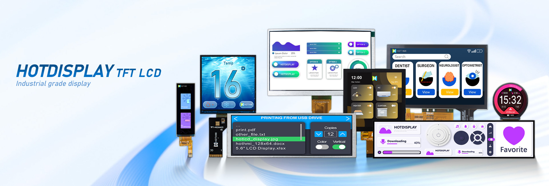 HOTLCD創(chuàng)立22年來,已開發(fā)出超過2000款標(biāo)準(zhǔn)和非標(biāo)準(zhǔn)液晶顯示屏及模組,廣泛應(yīng)用于人工智能、5G通訊、無人機(jī)、物聯(lián)網(wǎng)、車聯(lián)網(wǎng)、智能家居、智能穿戴、智慧交通、儀器儀表、醫(yī)療設(shè)備、工控設(shè)備、電力設(shè)備、勘探設(shè)備、航空航天、軍事裝備等諸多先進(jìn)領(lǐng)域。